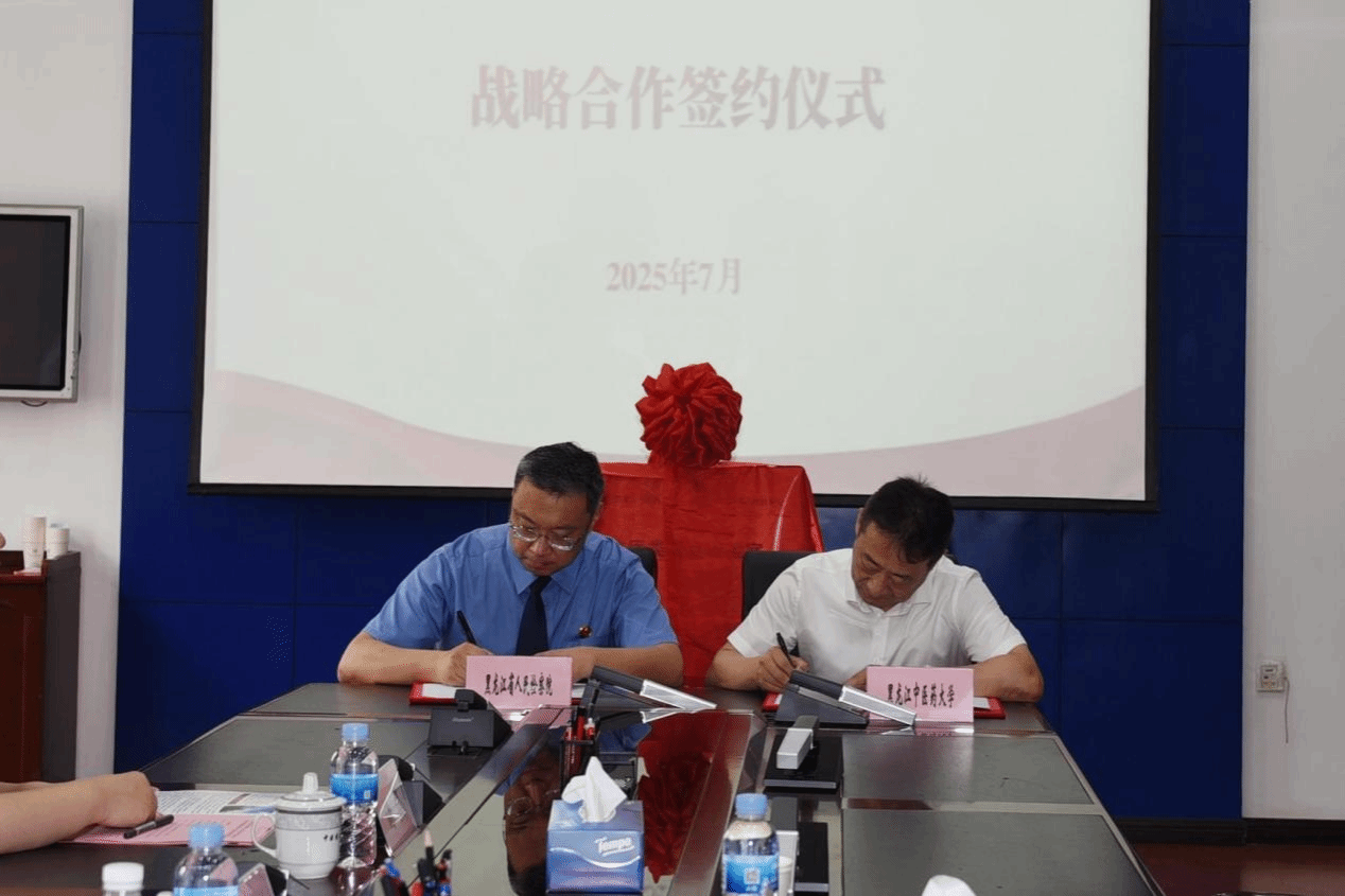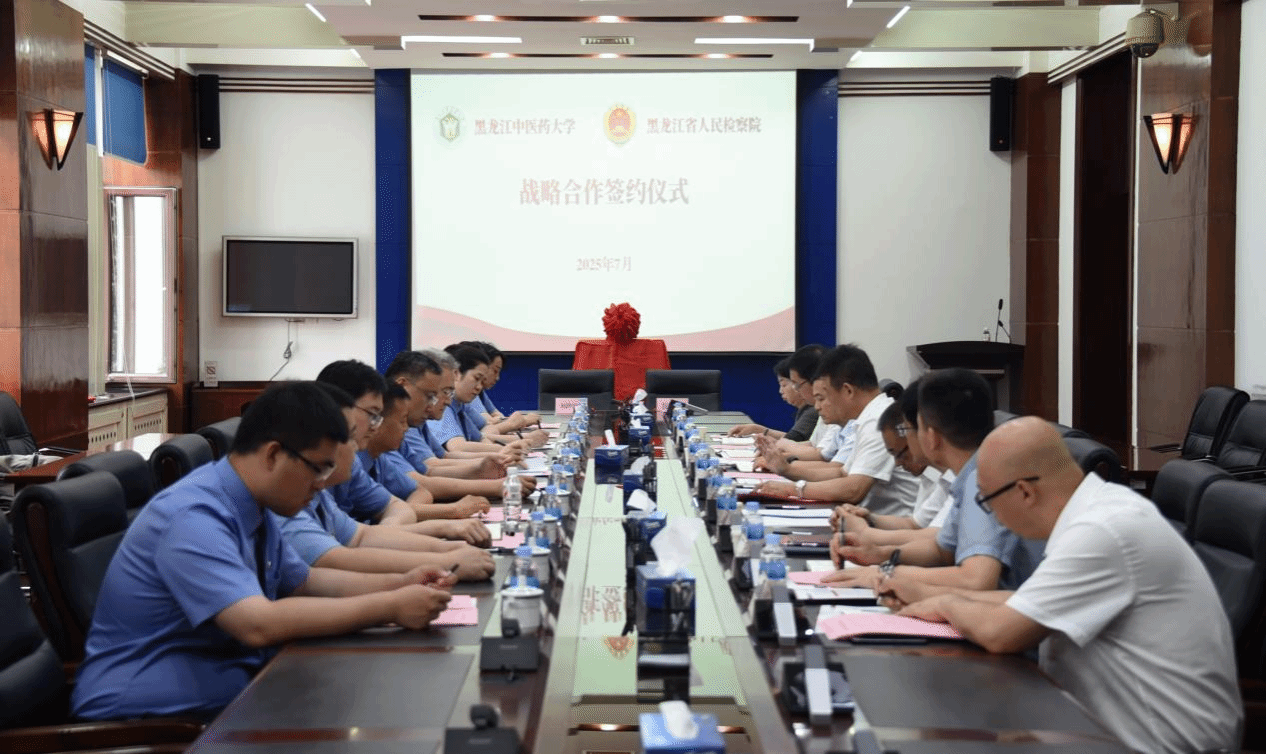 为深化中医药领域法治保障与科研创新协同发展,7月16日上午,黑龙江省检察机关与黑龙江中医药大学共同举行合作共建法医类重点实验室签约仪式,黑龙江省人民检察院党组成员、副检察长刘兆达,哈尔滨市人民检察院党组副书记、常务副检察长姜勇智,黑龙江中医药大学校长、党委副书记郭宏伟出席仪式并致辞。黑龙江省检察机关相关领导出席签约仪式,副校长、党委常委张浩主持签约仪式。