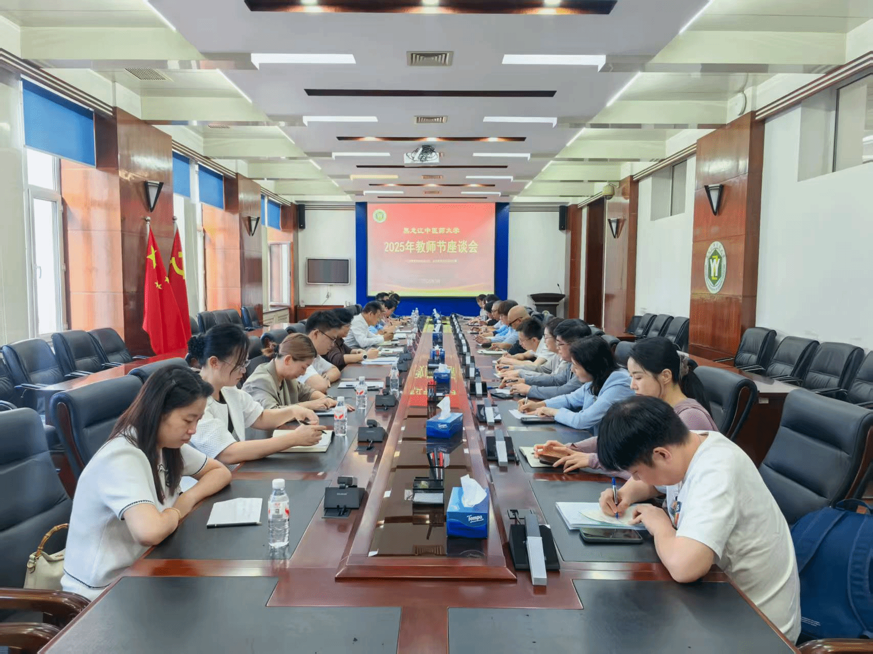 9月9日下午,学校围绕2025年教师节“以教育家精神铸魂强师,谱写教育强国建设华章”的主题召开教师座谈会。校长郭宏伟出席会议并讲话,副校长张浩主持座谈会,来自全校各教学单位的22名教师代表参会。