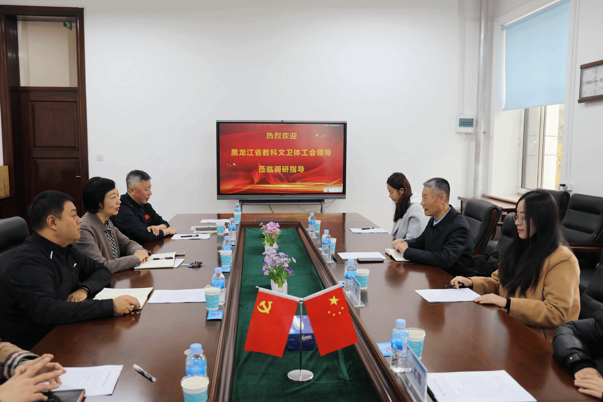 校工会常务副主席王晓鹏同志对学校工会工作进行了专题汇报。与会同志对省教科文卫体工会“十五五”发展规划编制工作作专题讨论。