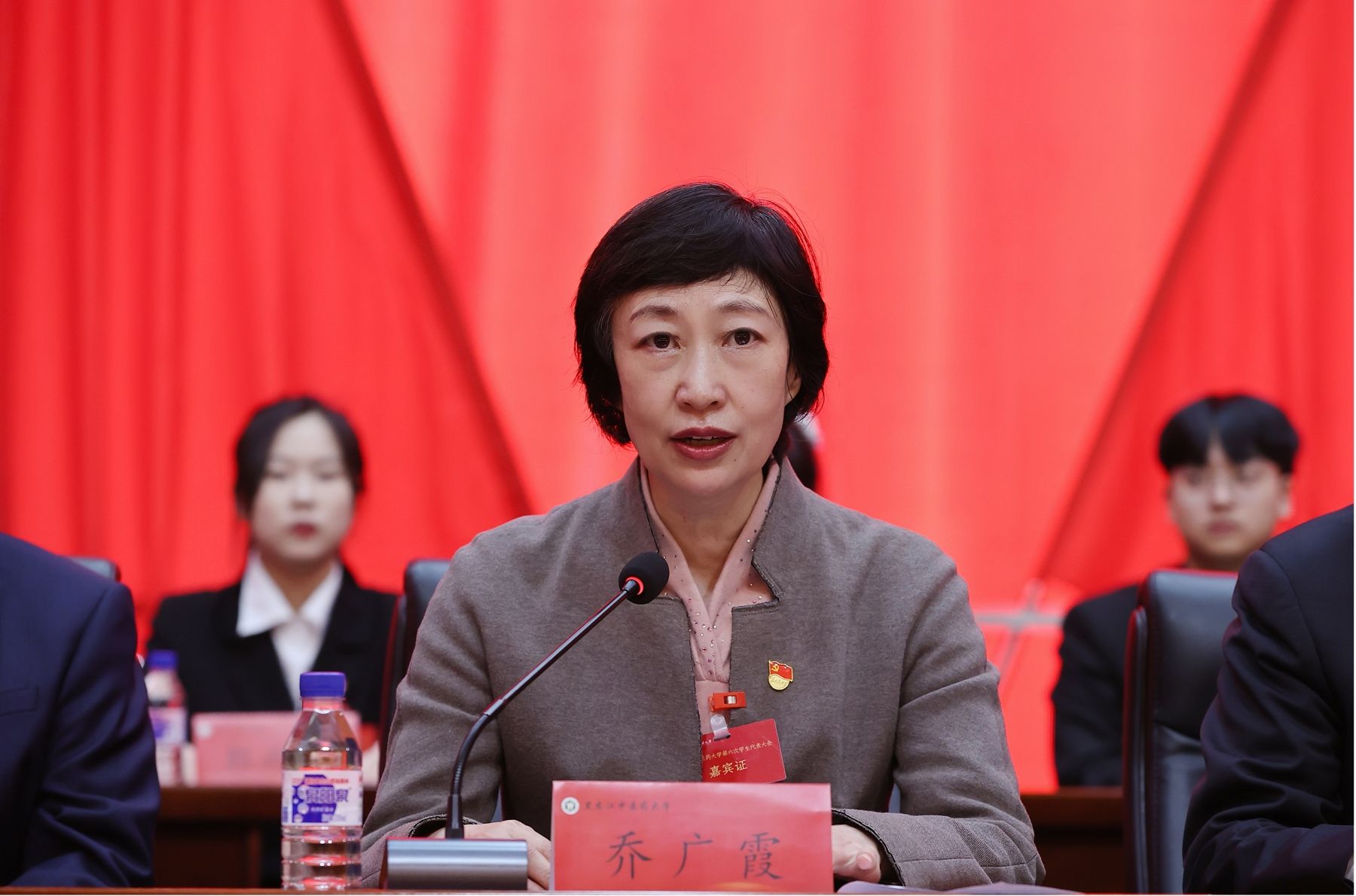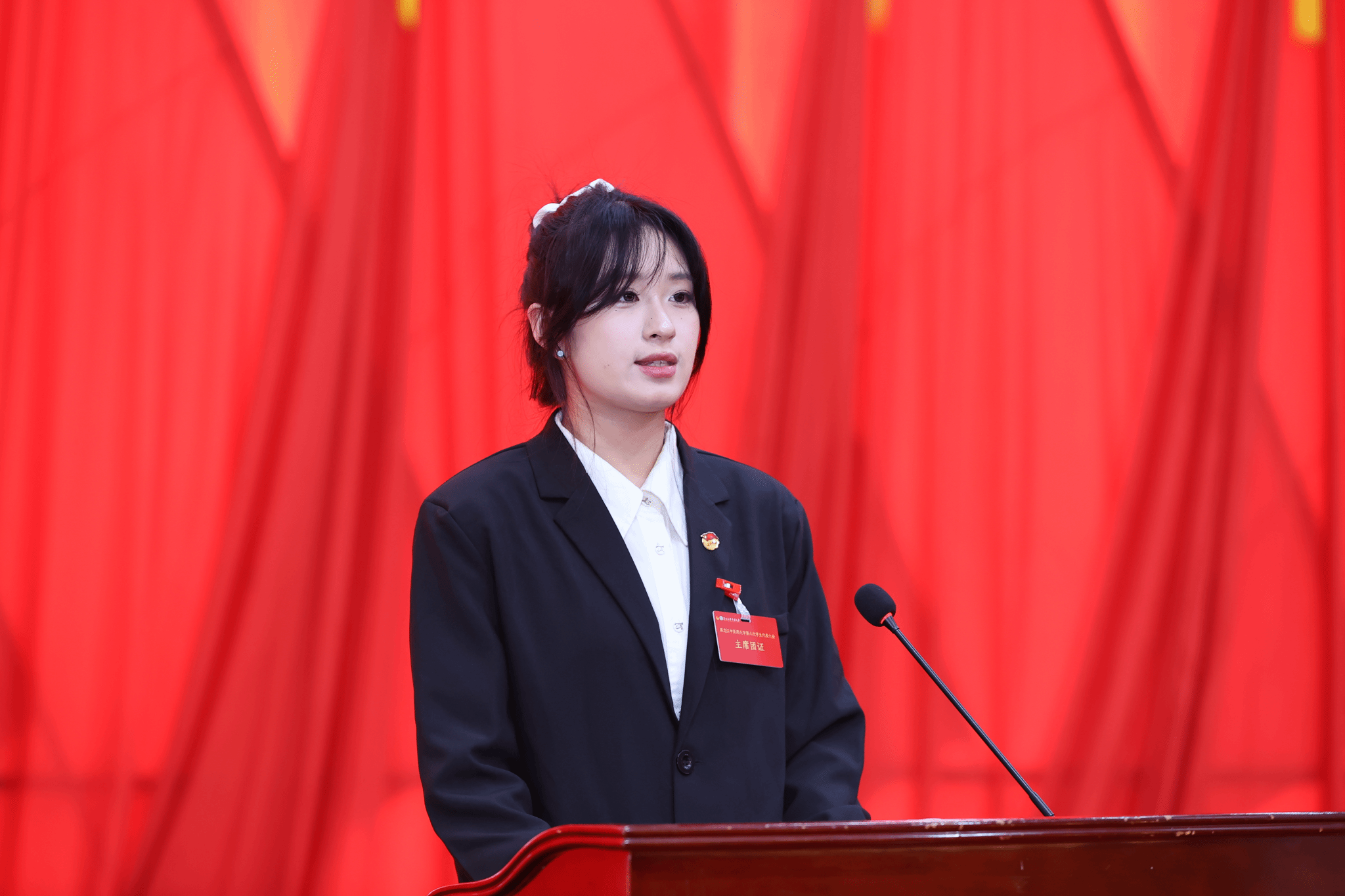 第五届学生委员会主席团成员郑子榕同学作题为《赓续初心使命,挺膺时代担当——以青春之力书写中国式现代化新篇章》的黑龙江中医药大学2024-2025年度学生委员会工作报告。
