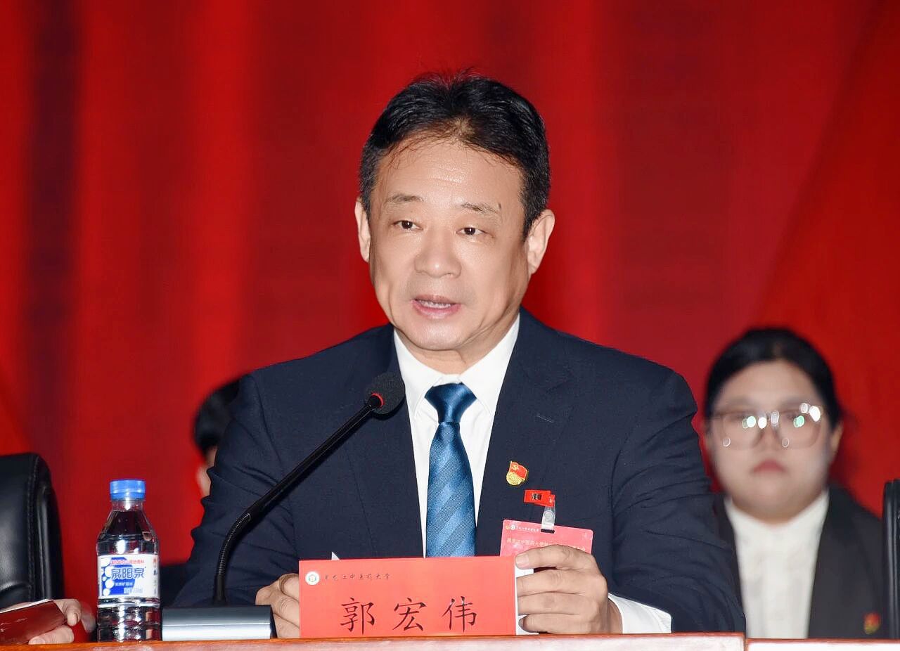 郭宏伟充分肯定了校学生会取得的成绩,他指出在过去一年,校学生会持续深化改革赋能,以规范化建设夯实组织根基,以精准化服务回应同学期盼,充分彰显了联系广大青年学生的桥梁纽带作用,为助力学校建设发展和服务学生成长成才作出了积极贡献,并向全校各级学生组织和学生干部提出希望,一是坚定理想信念,锚定自身使命坐标;二是坚守服务初心,凝聚全校的奋进合力;三是坚持实干笃行,接续民族的岐黄薪火。最后他勉励各级学生会与全体学生干部们,以赤诚奉献之姿、锐意进取之志,团结带领全校同学,在中国式现代化的伟大实践中挺膺担当,共同擘画龙中医未来的辉煌篇章。