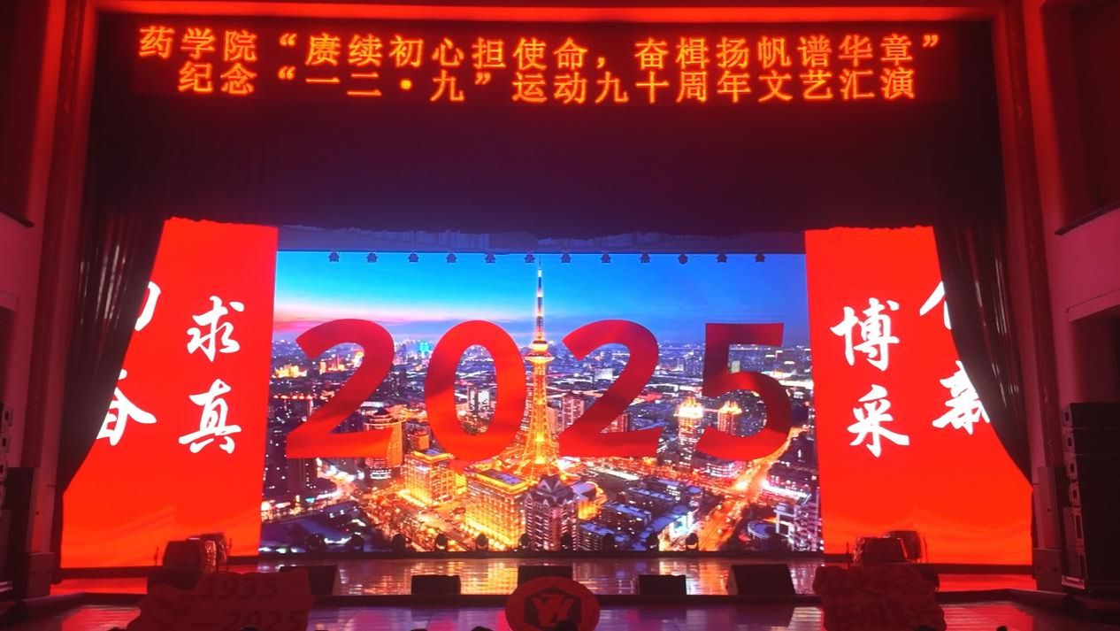 12月12日晚,药学院“赓续初心担使命,奋楫扬帆谱华章”纪念“一二·九”运动九十周年文艺汇演在主楼礼堂举行。校党委副书记、工会主席乔广霞,校党委常委、副校长吴修红,各相关职能部门负责人,各学院主管学生工作领导,药学院党政领导班子及药学院学生工作办公室全体人员出席活动。