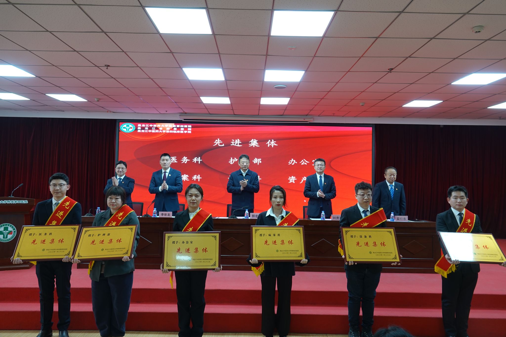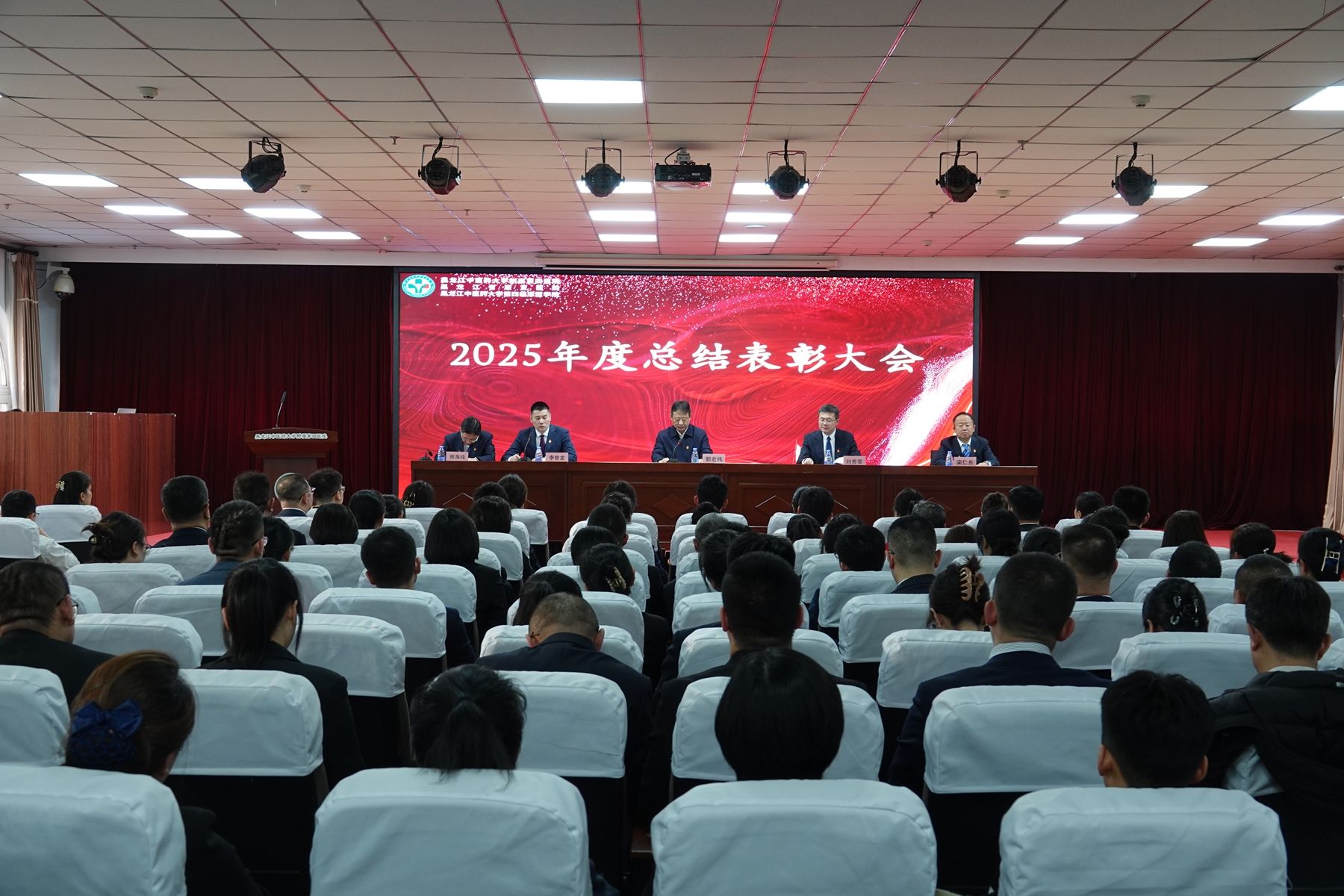 1月28日下午,附属第四医院(第四临床医学院)召开2025年度总结表彰大会。学校校长郭宏伟出席会议并讲话,医院院长刘贵军作2025年度工作总结报告,医院党委副书记、副院长李世龙主持大会。医院班子成员栾仁东、周海纯,先进集体代表、先进个人获得者,全体中层干部、行政科室全体及业务科室代表参加会议。