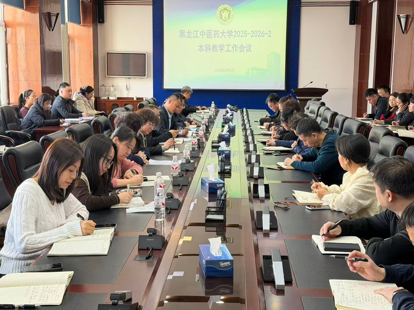 学生工作处、国有资产管理处、后勤管理处、中医药高等教育研究院、网络安全与信息中心、教务处等部门负责人,以及各教学单位主管教学领导、教务科长、教学秘书参加会议。
