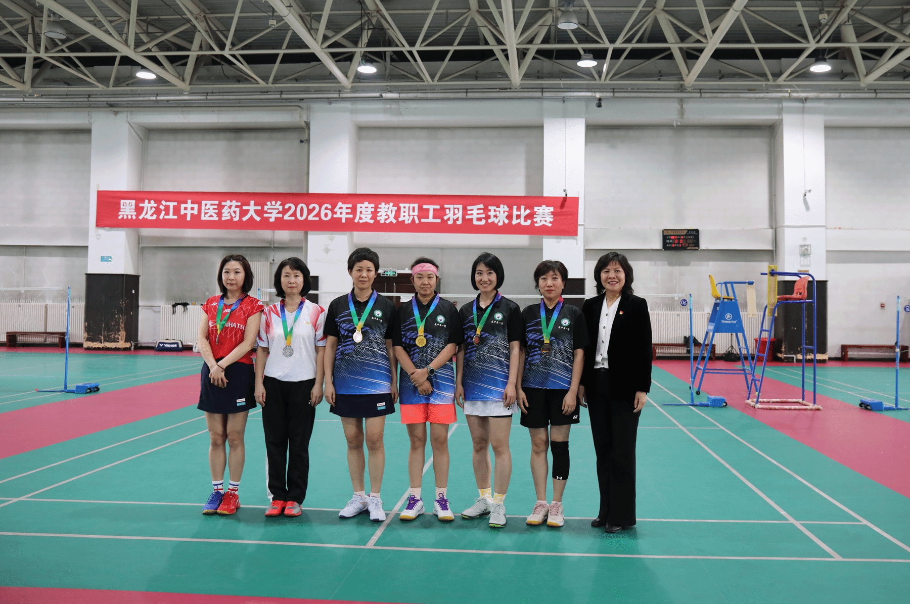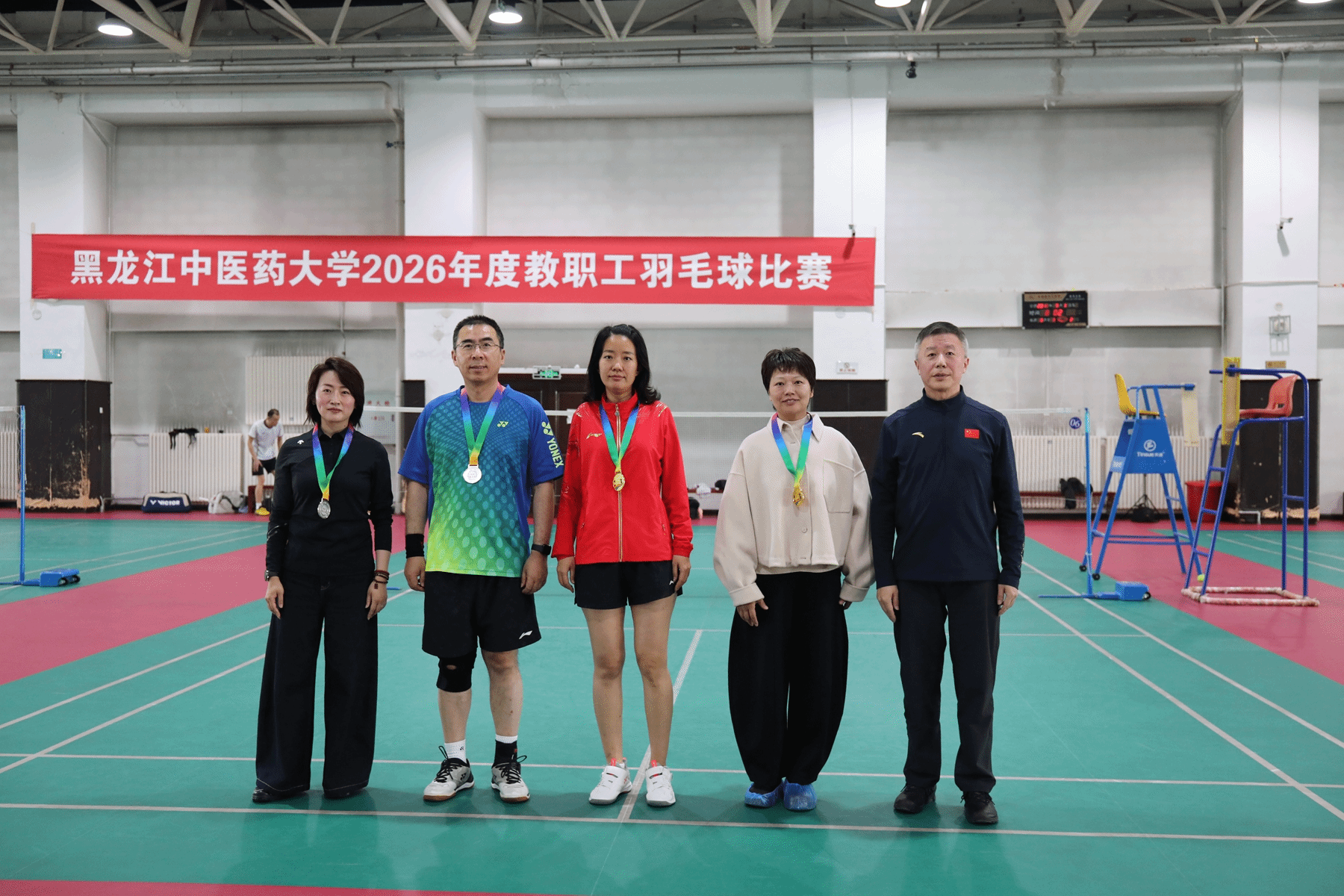 为丰富教职工文化体育生活,推动学校全民健身运动深入开展,3月25日至26日,学校在体育馆五楼羽毛球馆举办2026年度教职工羽毛球比赛,校党委副书记、工会主席乔广霞,校党委常委、副校长吴修红,校工会常务副主席王晓鹏到场观赛并为获奖选手颁奖。