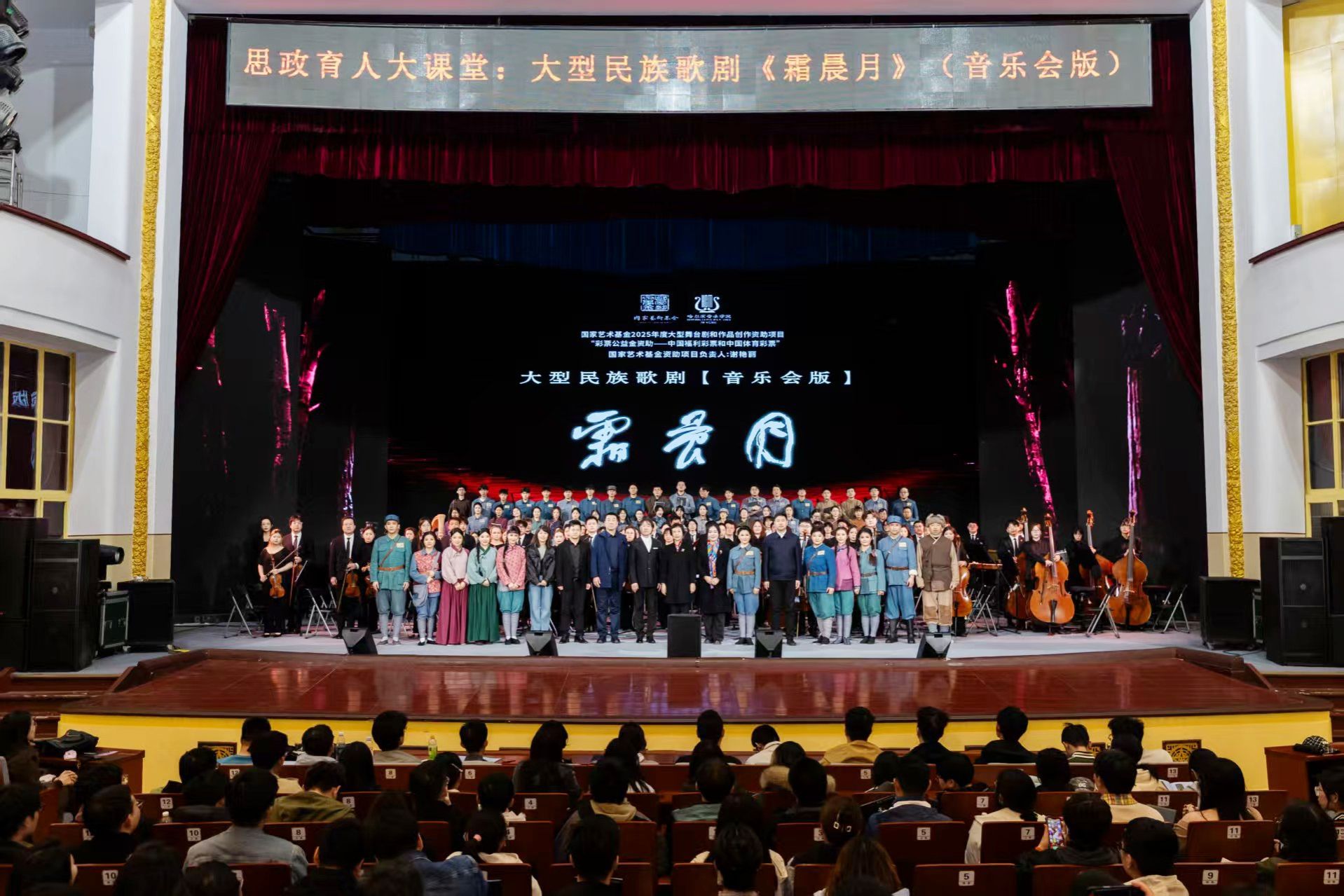 为加强“一站式”学生社区建设,进一步用好龙江红色资源,4月25日、26日下午,国家艺术基金2025年度大型舞台剧和作品创作资助项目、哈尔滨音乐学院出品的民族歌剧《霜晨月》专场演出在黑龙江中医药大学主楼礼堂举行,学校与哈尔滨音乐学院师生共上思政育人大课。