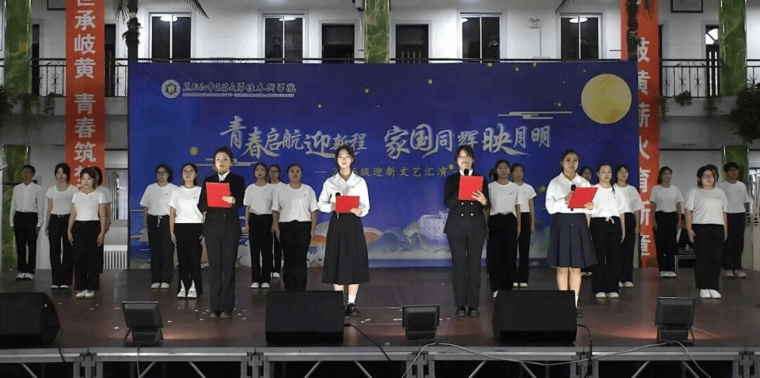 9月26日,由佳木斯学院团委举办的“青春启航迎新程,家国同辉映月明”2025年迎新文艺汇演在教学楼举行,本次迎新晚会分为三个篇章。学院党委书记杜徽、党委副书记张勇、副院长夏雪、各相关部门负责人、辅导员代表以及800余名新生共同观看演出。