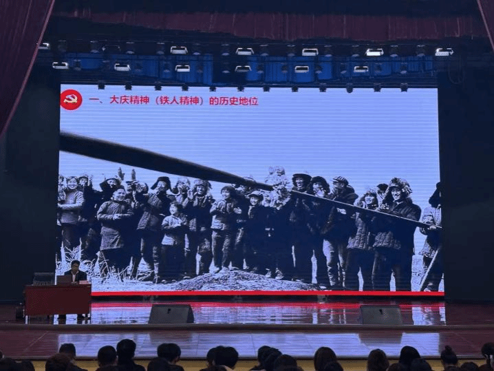 陈立勇教授围绕“大庆精神(铁人精神)的时代回响”这一主题,从三个方面展开了系统而深入的讲解,阐释了大庆精神(铁人精神)作为中华民族宝贵精神财富的历史地位;回顾了大庆石油会战中形成的艰苦奋斗、科学求实、团结协作等优良传统和过硬作风;结合新时代背景,剖析了大庆精神(铁人精神)对青年学子坚定信念、锤炼品格、勇担使命的现实启示。