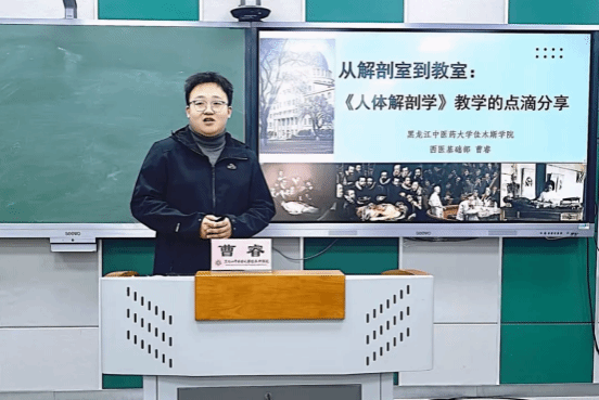 曹睿以《从解剖室到教室:〈人体解剖学〉教学的点滴分享》为题,从学科认知入手,精准剖析教学痛点,并分享了基于“痛点思维”的课堂教学设计与针对性解决方案。