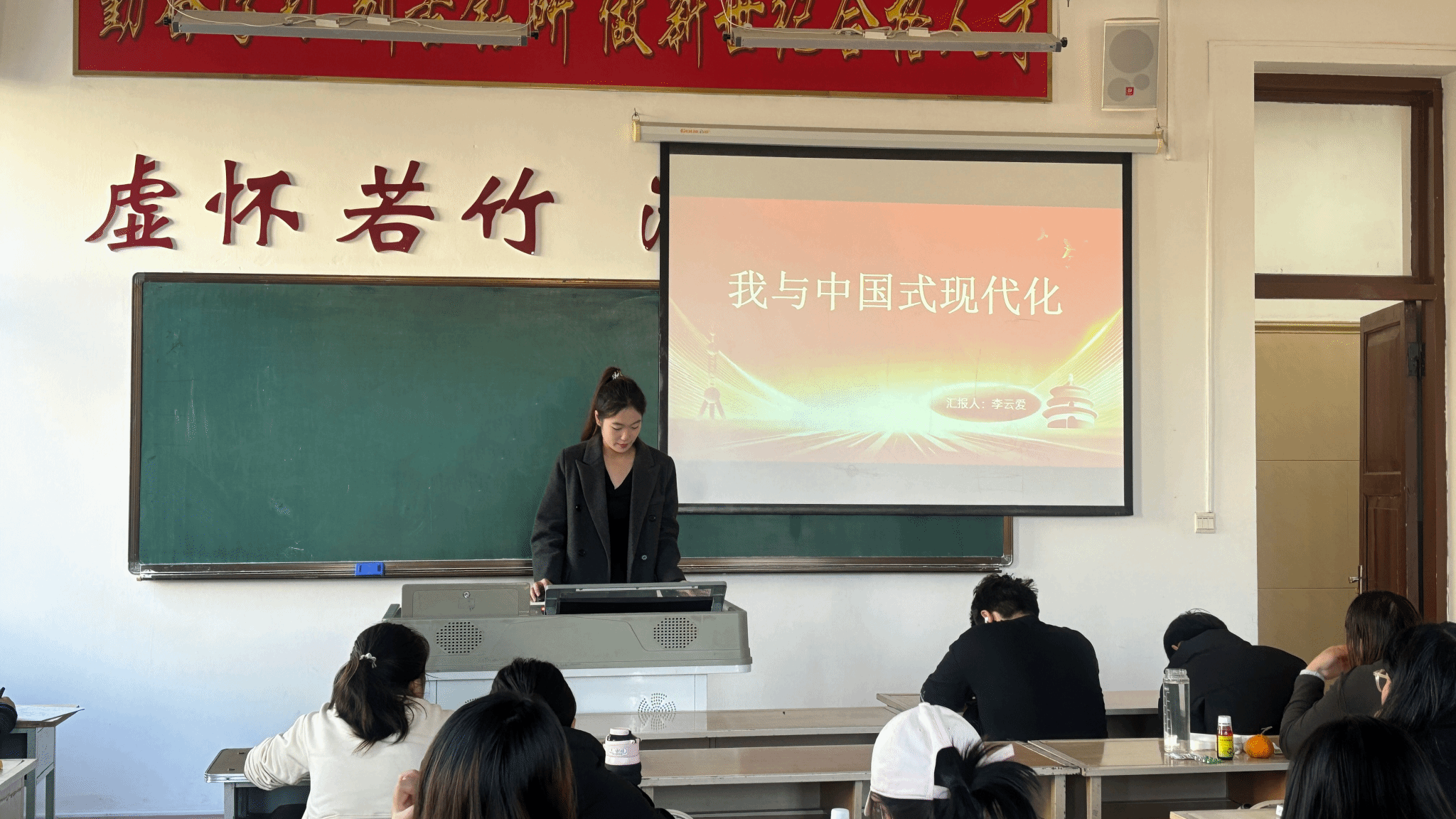 此外,学院各班级紧扣“我与中国式现代化”主题,组织开展了形式多样的主题班会。班会上,同学们通过观看“中国式现代化”科普视频、分享家乡发展变迁案例等形式,深入学习中国式现代化的内涵特征,并展开热议。