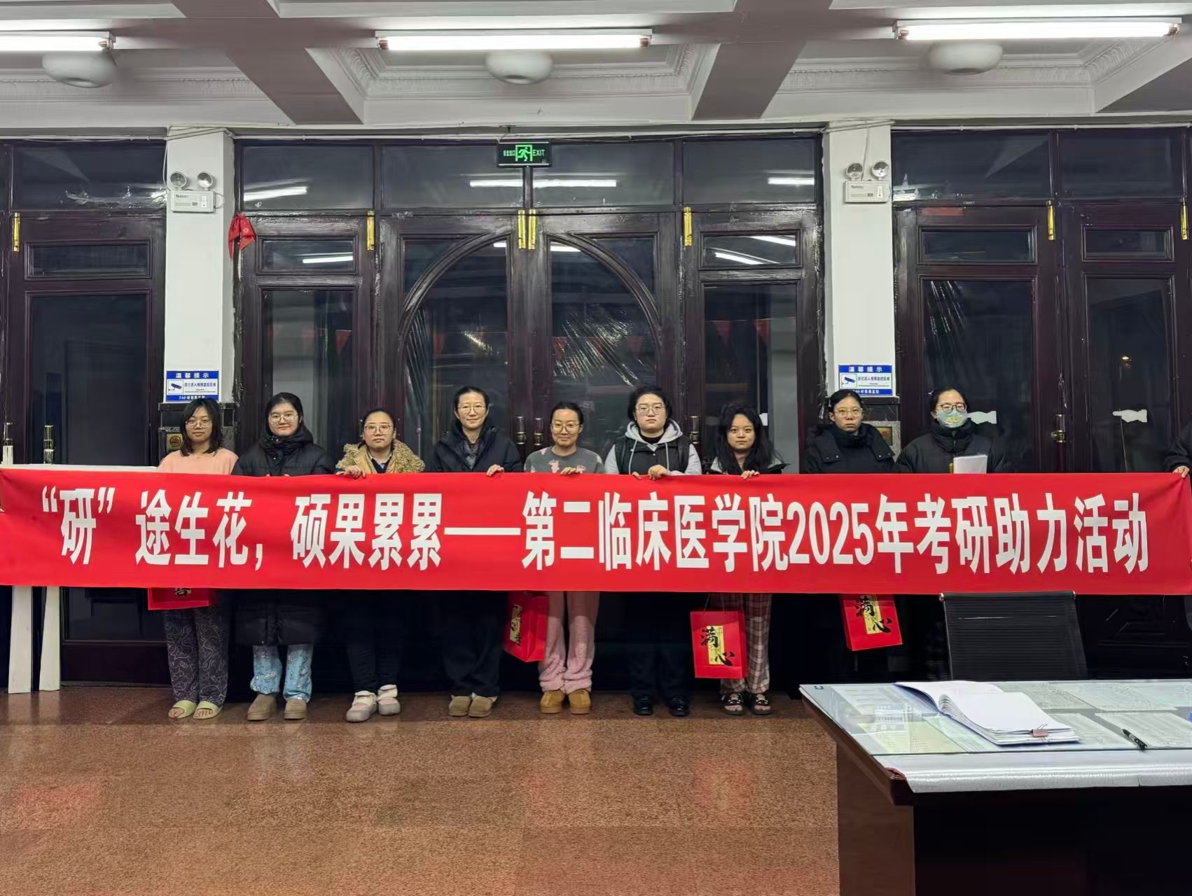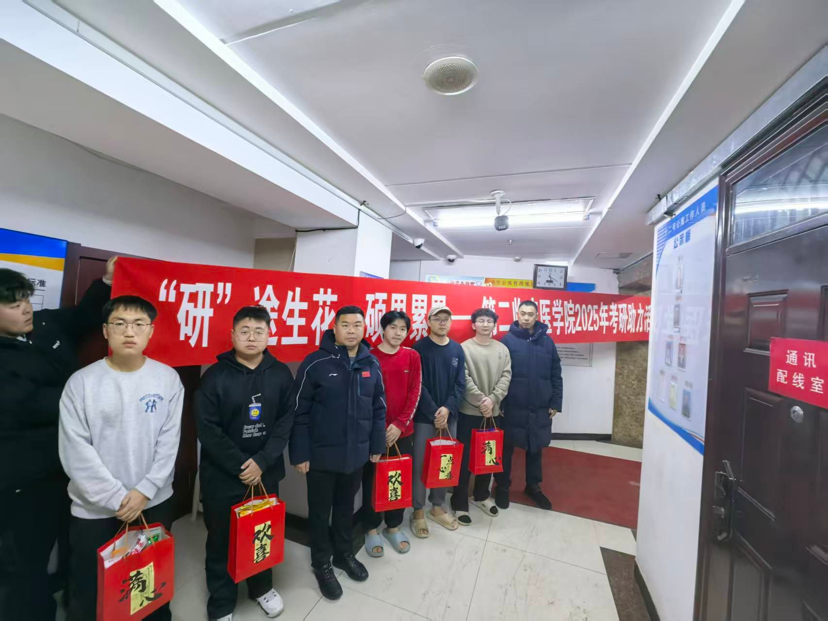 随着全国硕士研究生招生考试日益临近,为表达学院对毕业年级考研学生的深切关怀与全力支持,营造温暖向上的备考氛围,12月2日下午,第二临床医学院开展了“‘研’途生花,硕果累累”考研助力活动。学院党委副书记、副院长冷德生,副处级辅导员卞策分别带队深入毕业生宿舍楼,将满载祝福的“考研加油包”送至学子手中,为正在紧张备考的同学们送去冬日的温暖与奋进的力量。