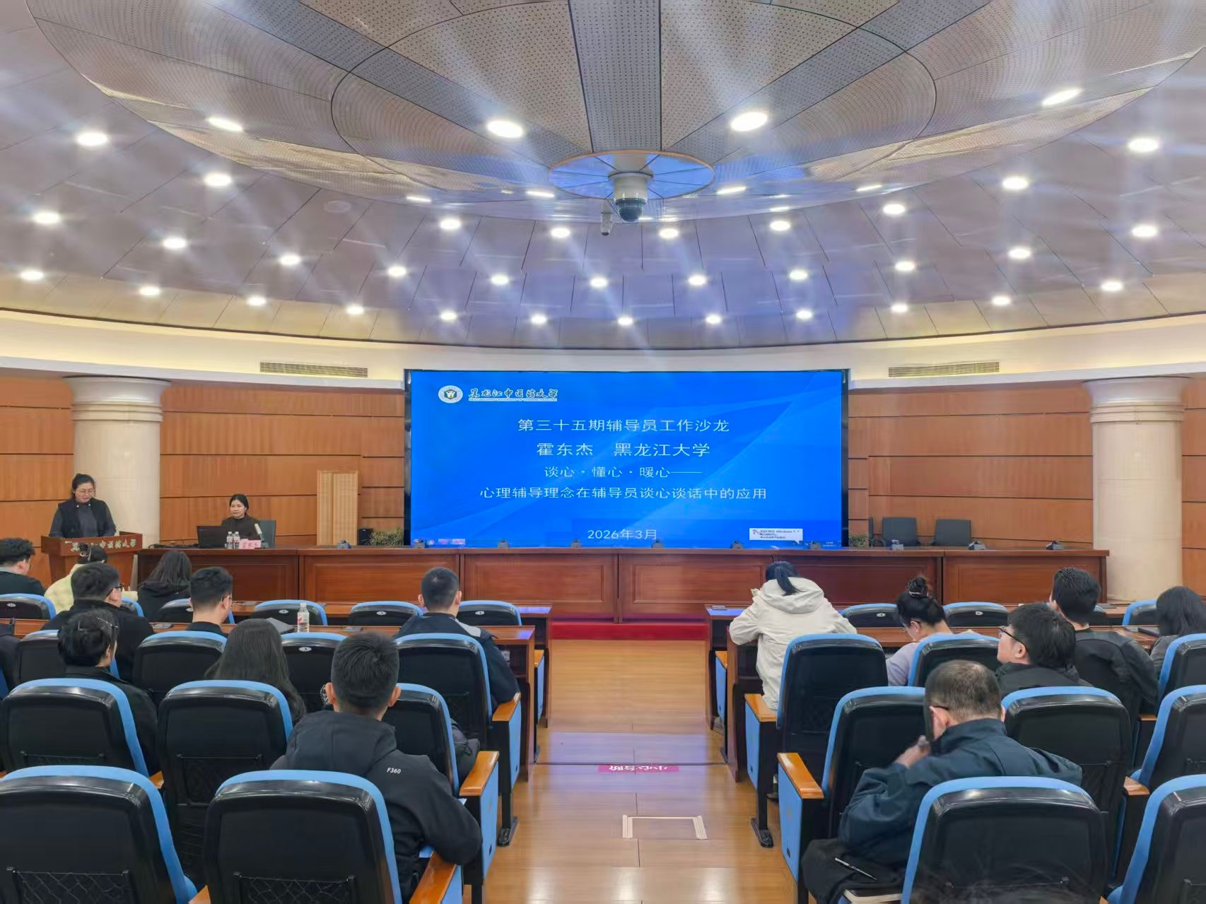 3月13日下午,学生工作部在主楼三楼求真讲堂举办第三十五期“辅导员工作沙龙”,黑龙江大学心理健康教育中心专职教师霍东杰应邀以“谈心·懂心·暖心——心理辅导理念在辅导员谈心谈话中的应用”为题与我校学生工作者进行交流。