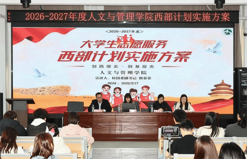 为引导学生拓宽就业视野,响应国家“到基层去、到祖国最需要的地方去”的号召,3月17日,人文与管理学院以线上线下结合方式举办大学生志愿服务西部计划专题宣讲会,校团委副书记郭菲菲应邀为2022级毕业生和2023级在读学生开展政策解读。