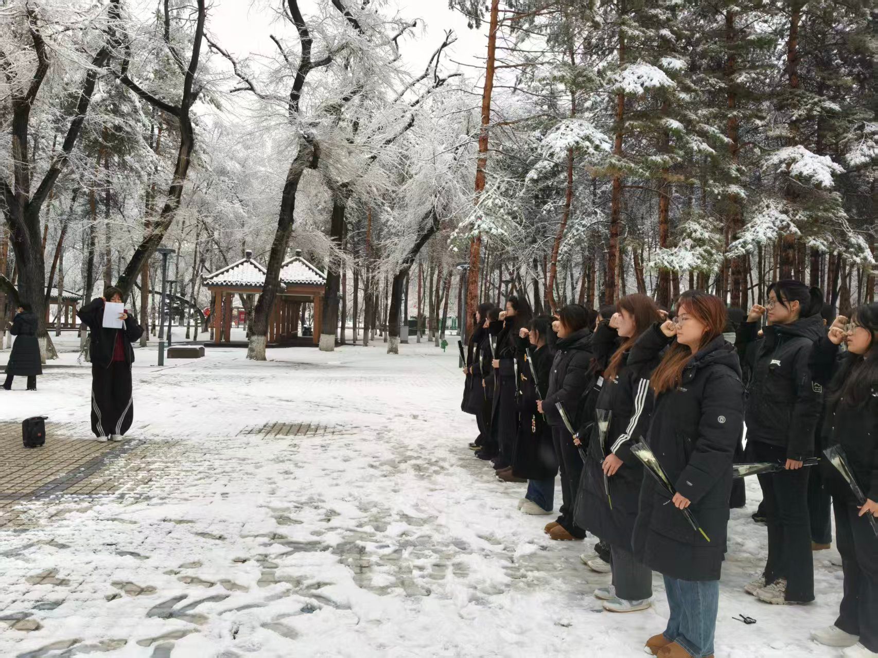 佳木斯学院护理专业部学生会主席韩珺阳领誓,全体同学庄严宣誓,立志传承英烈精神、报效祖国。