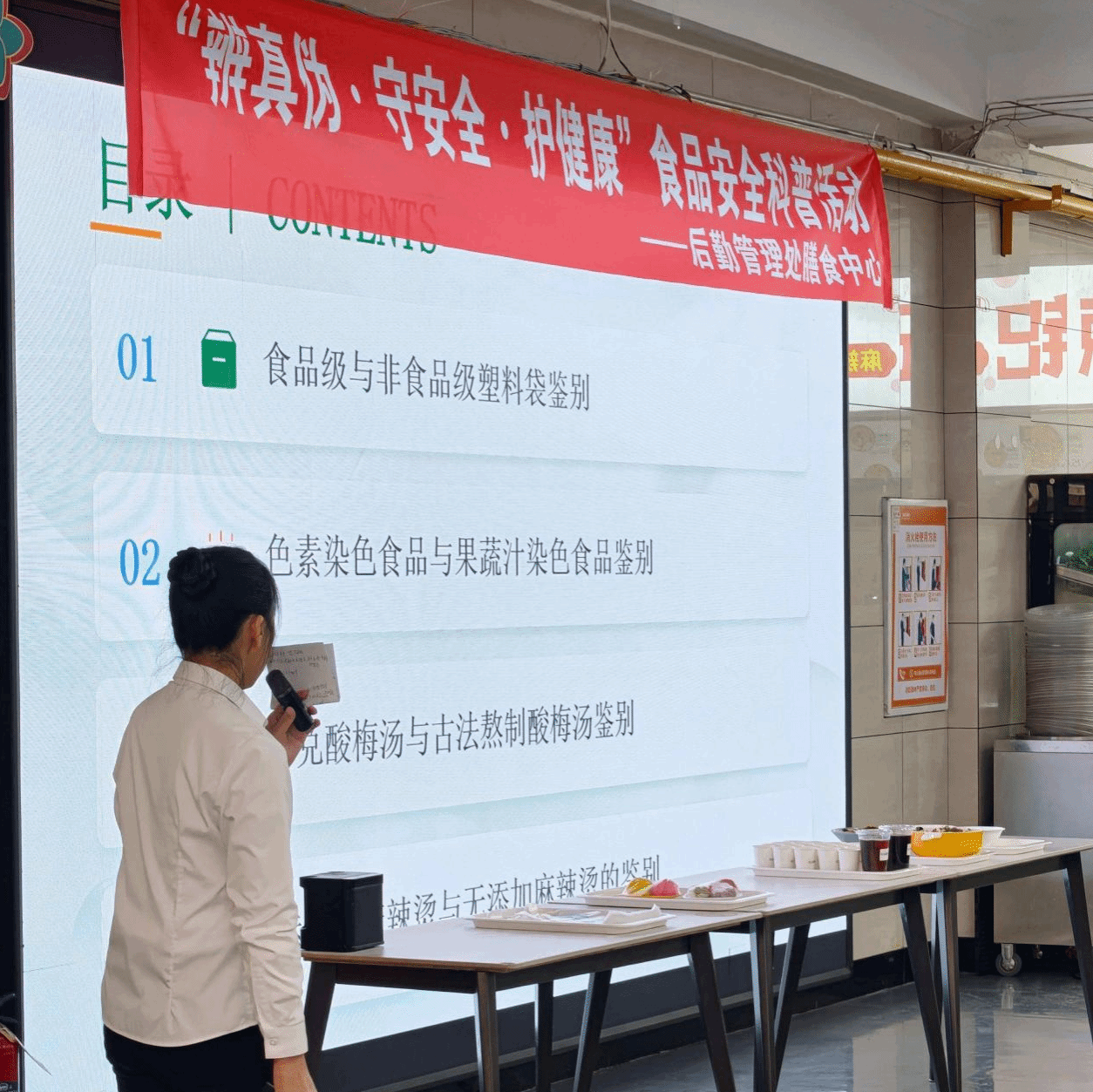 此外,检查组一行还参加了膳食中心联合学校团委生活权益部举办的“辨真伪・守安全・护健康”食品安全科普活动,通过现场教学、互动体验帮助学生掌握食品安全知识与食品鉴别技巧,切实提升学生食品安全防范意识。