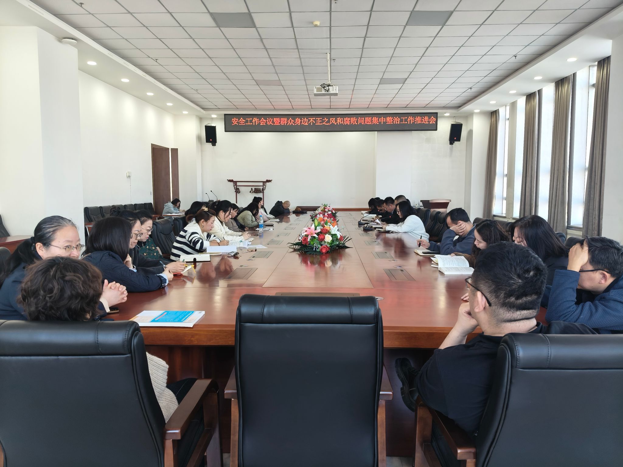 4月14日,人文与管理学院在综合楼1117会议室召开安全工作会议暨群众身边不正之风和腐败问题集中整治工作推进会议,全体教职工参会,学院党委书记包占全主持会议。