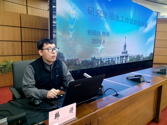 辅导员韩涛介绍了我校博士、硕士研究生招生工作的组织架构、工作流程以及研究生导师在招生工作中注意事项,解读了招生工作相关制度性文件。