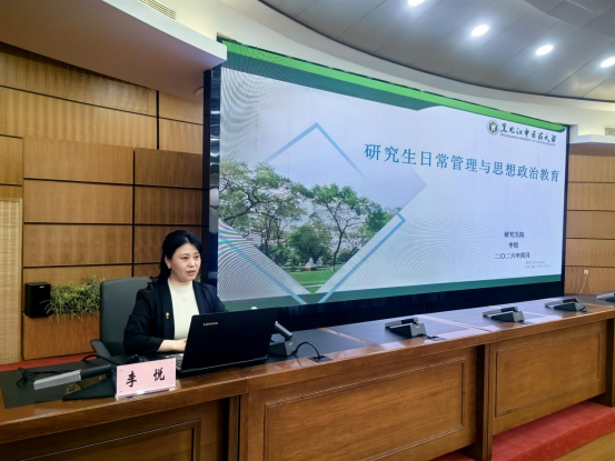 辅导员李悦围绕研究生基本情况、日常管理规范、奖惩制度、奖助政策及思想政治教育等内容系统讲解,明确请销假、公寓管理、学术诚信等核心要求,引导导师切实履行第一责任人职责,全面提升研究生管理与思政育人工作水平。