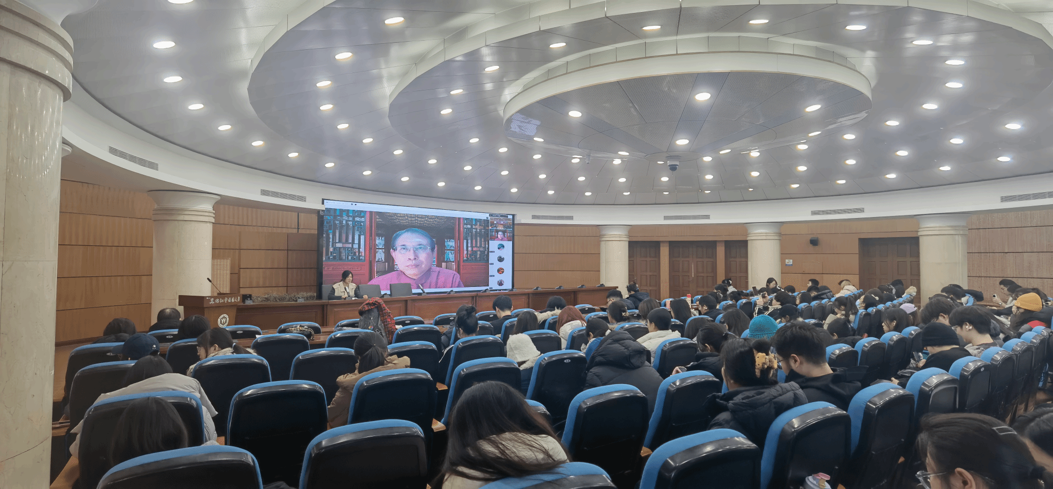 李良松教授围绕“国学与中医文化的价值内涵”“国学与中医文化的精神境界”“国学与中医文化的医道情怀”三大核心主题系统展开论述。他凭借深厚的学术积淀,结合生动翔实的实例,从历史脉络到当代实践、从理论体系到临床应用、从个人修为涵养到时代使命担当等多个维度,为师生们清晰梳理了国学与中医人文精神的核心要义。